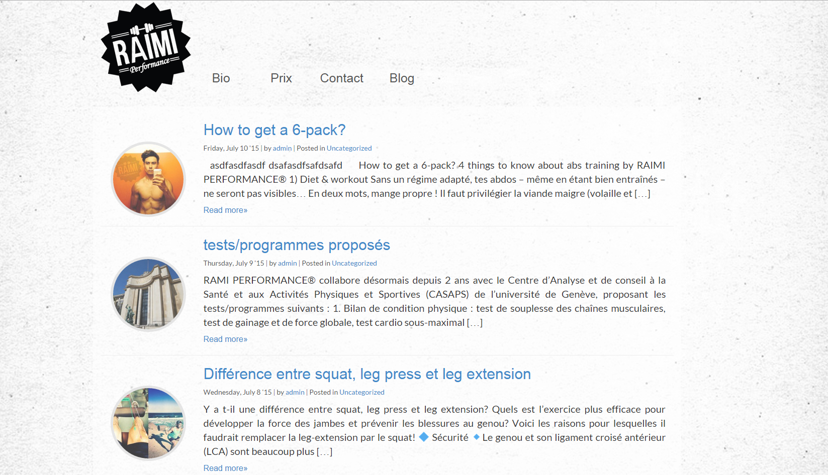 Template Wordpress realisé pour le site web de RaimiPerformance. Le client est arrivé avec un modèle en format psd et m'a demandé de lui créer un template sur mesure pour qu'il puisse modifier le contenu à sa guise. Je me suis occupé pourtant de concevoir le style de son blog et d'implémenter quelques plugins personnalisés.